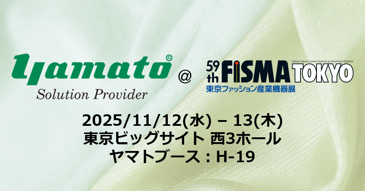 弊社ヤマトミシン製造株式会社は、来る11月12日(水)~13日(木)の2日間、東京ビッグサイト 西3ホールにて開催されます「59th FISMA TOKYO」へ出展参加させていただく運びとなりました。